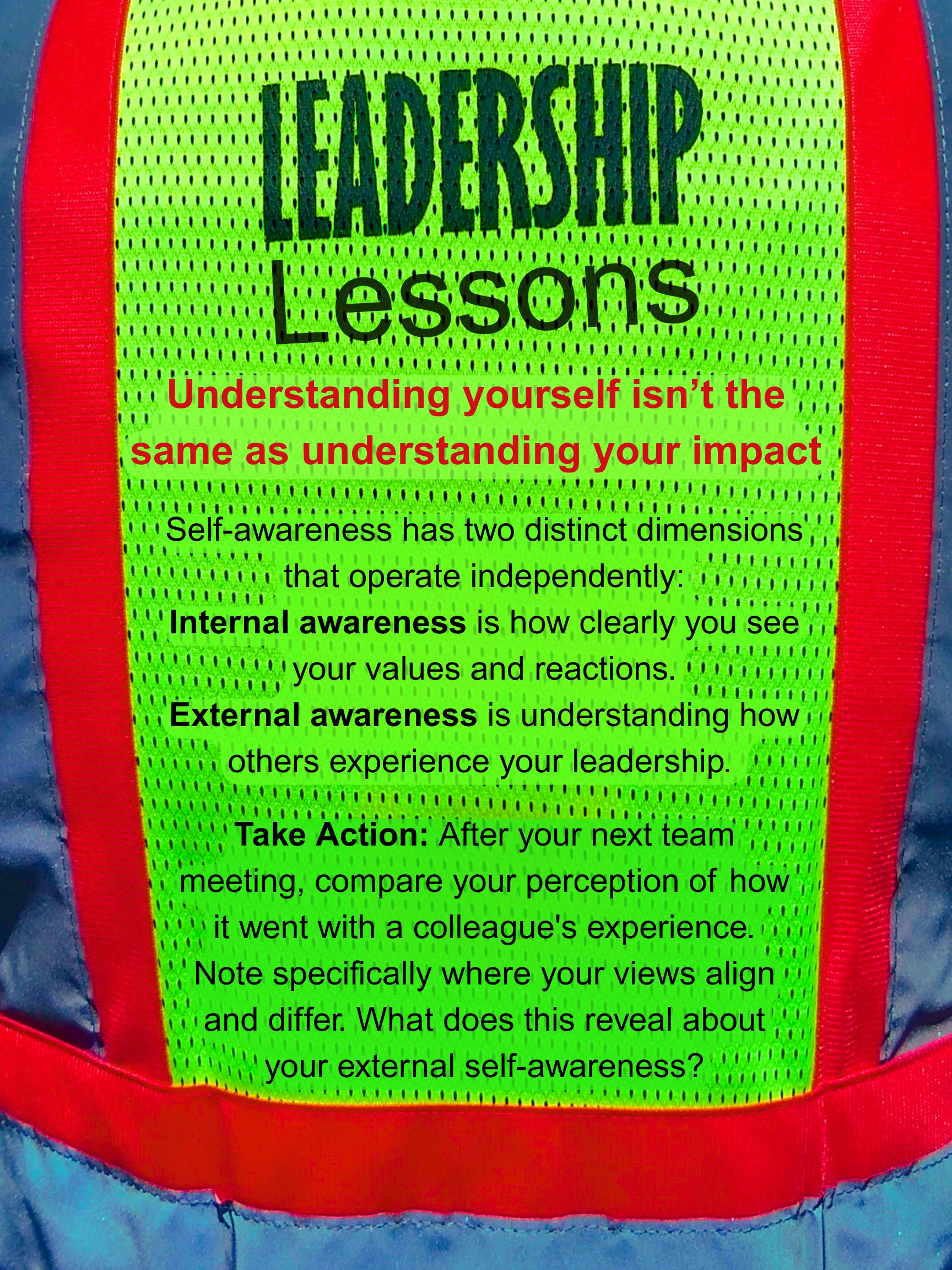 Take Action: After your next team meeting, compare your perception of how it went with a colleague's experience. Note specifically where your views align and differ. What does this reveal about your external self-awareness?