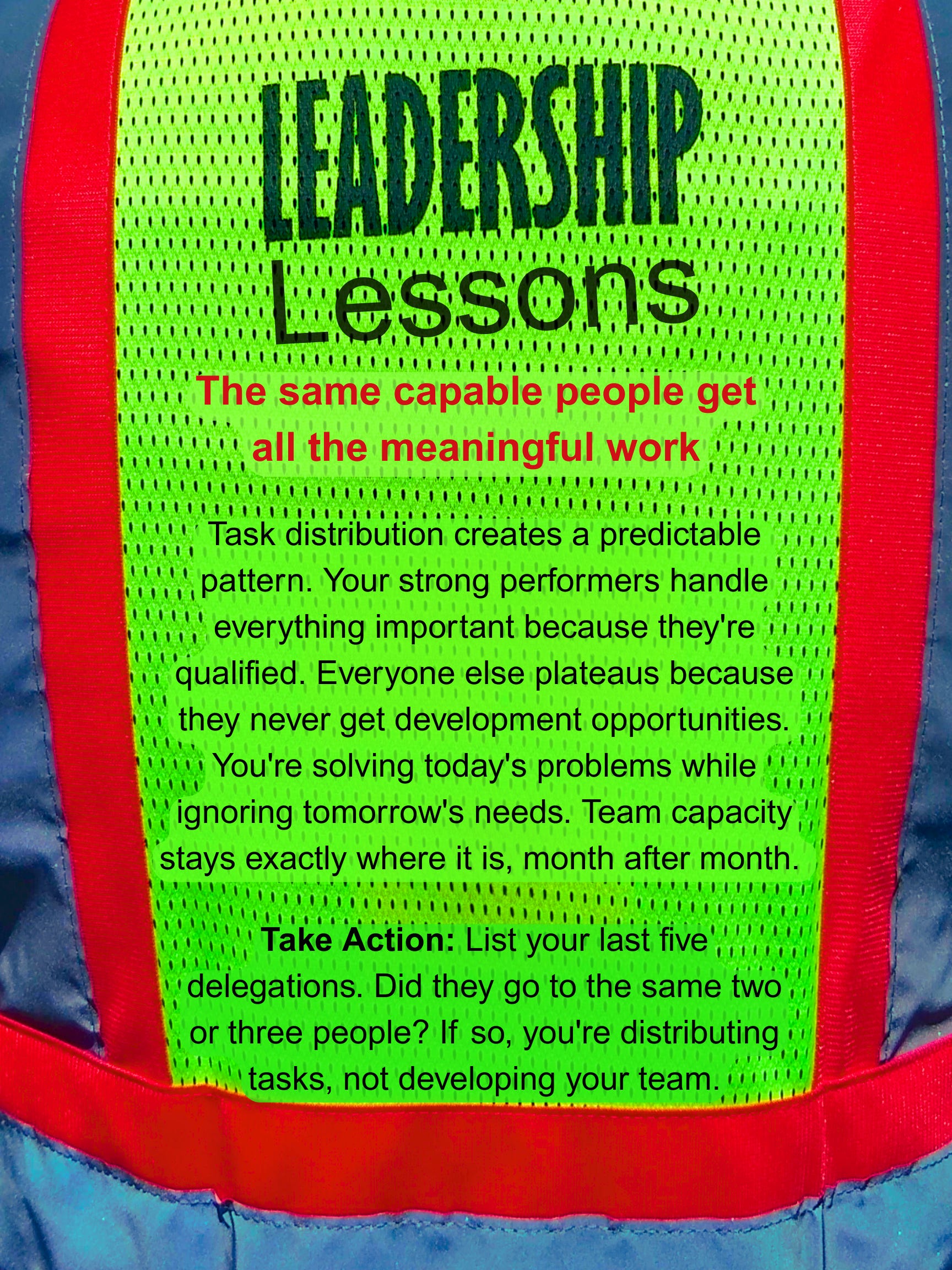 Take Action: List your last five delegations. Did they go to the same two or three people? If so, you’re distributing tasks, not developing your team.