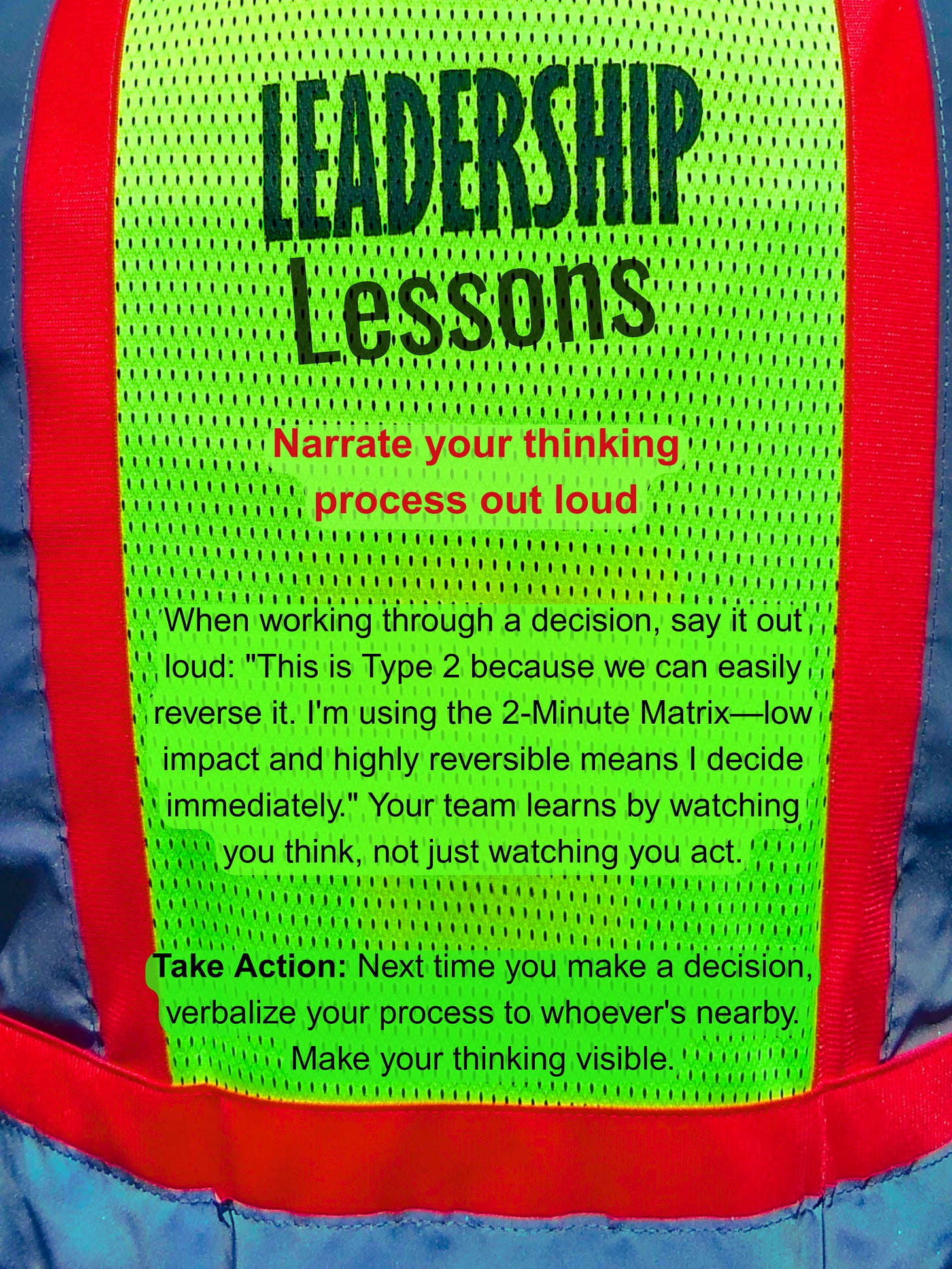 Take Action: Next time you make a decision, verbalize your process to whoever’s nearby. Make your thinking visible.