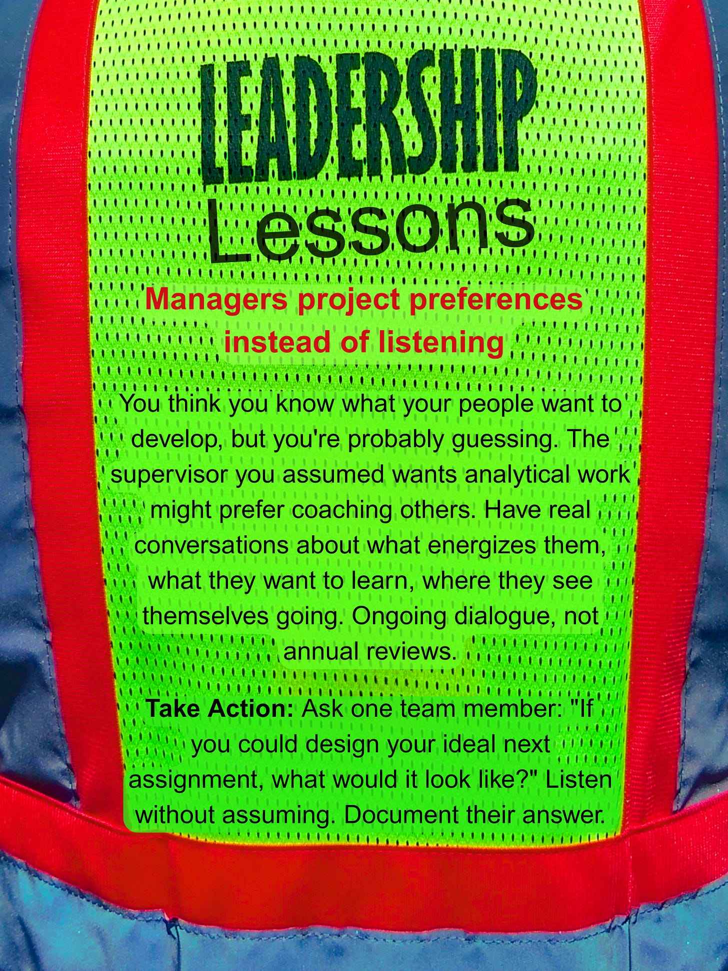 Take Action: Ask one team member: “If you could design your ideal next assignment, what would it look like?” Listen without assuming. Document their answer.