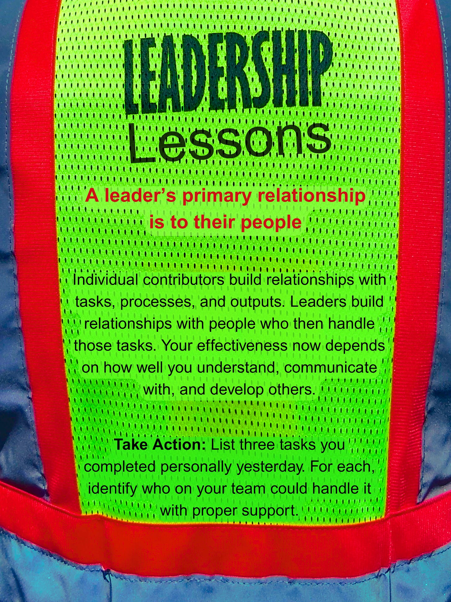 Individual contributors build relationships with tasks, processes, and outputs. Leaders build relationships with people who then handle those tasks. Your effectiveness now depends on how well you understand, communicate with, and develop others.
