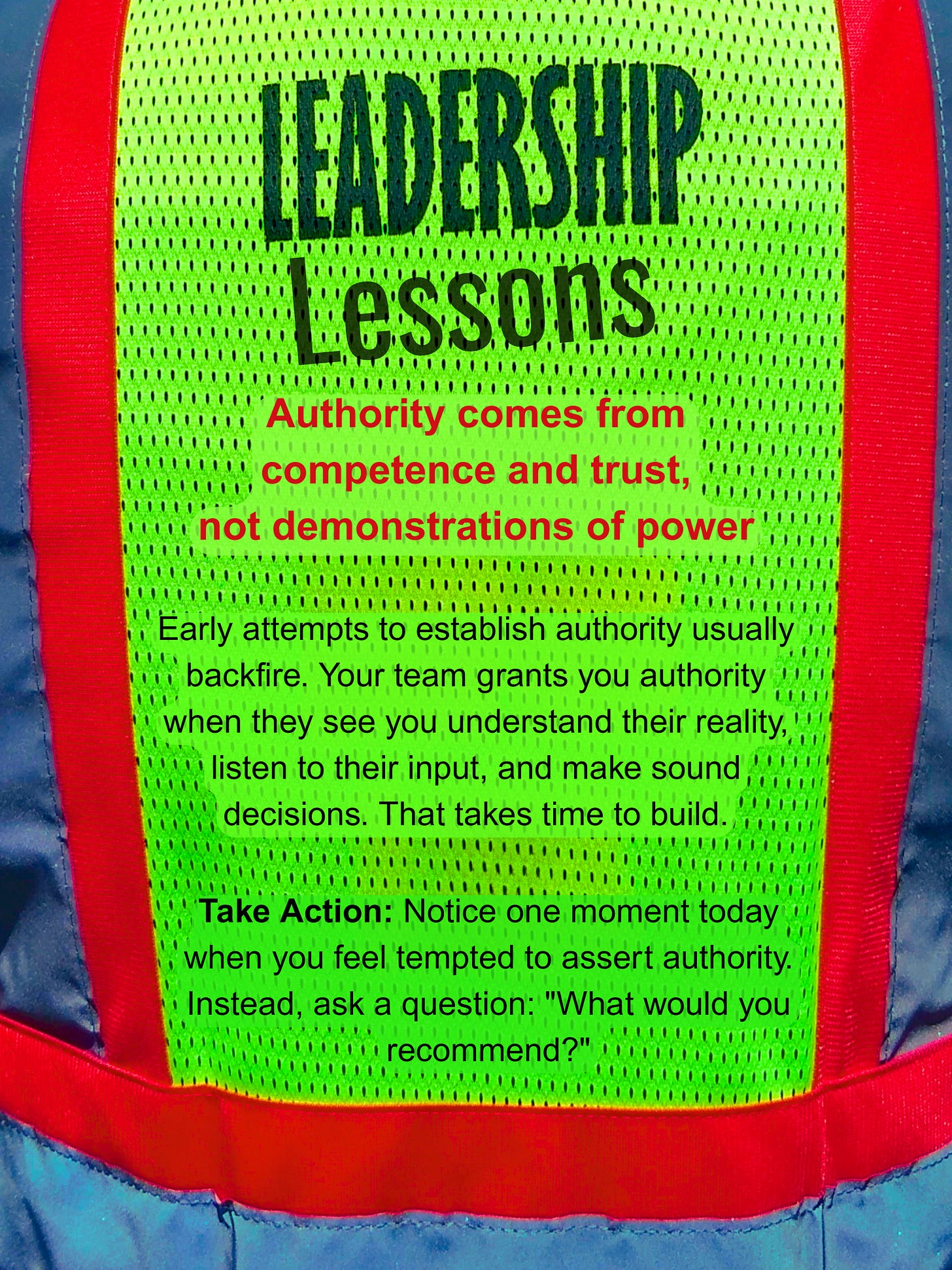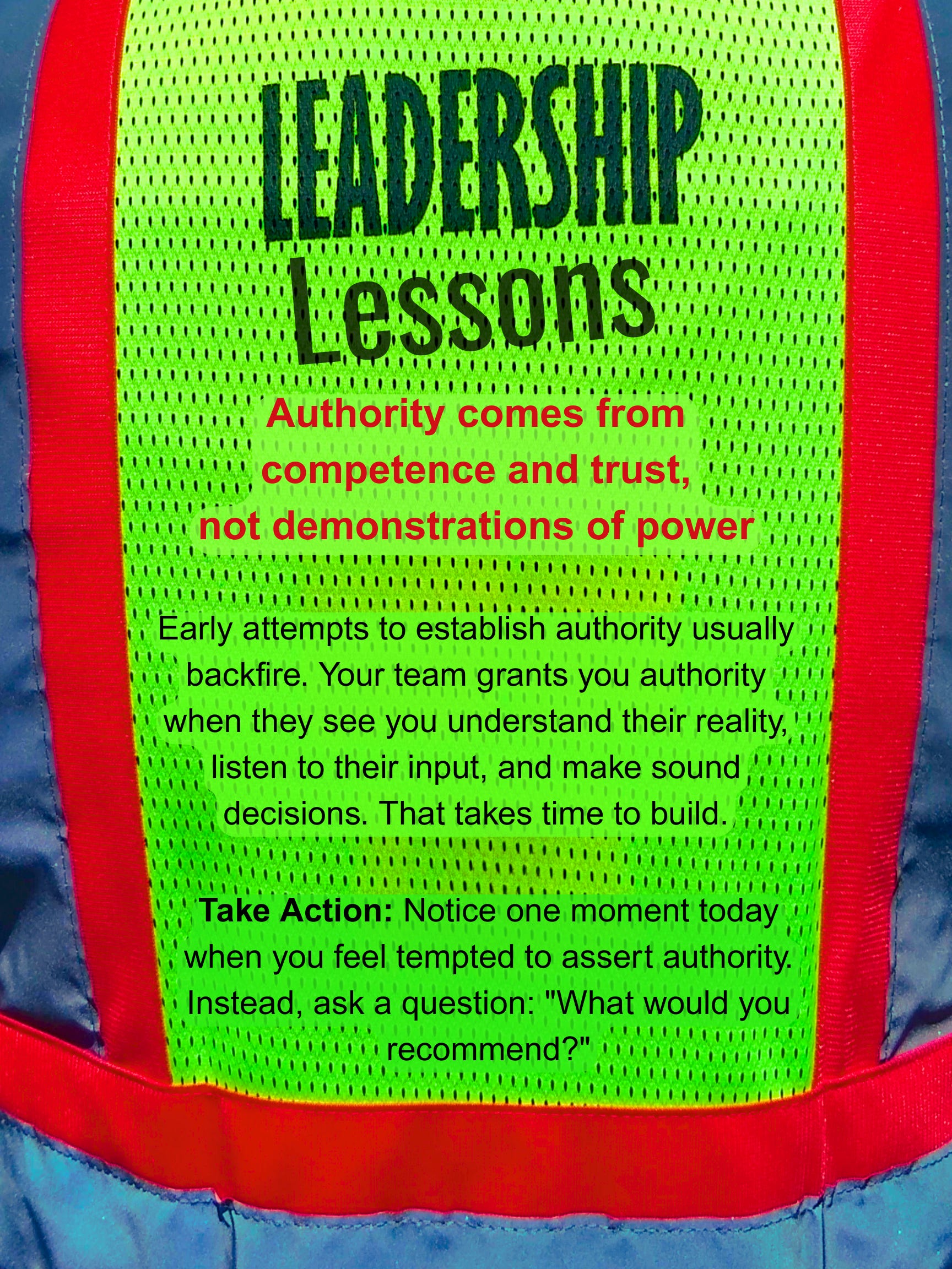 Early attempts to establish authority usually backfire. Your team grants you authority when they see you understand their reality, listen to their input, and make sound decisions. That takes time to build.