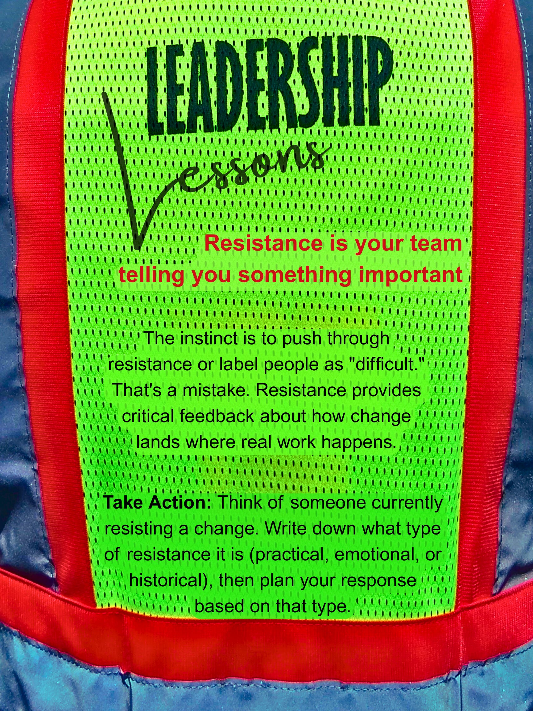 The instinct is to push through resistance or label people as “difficult.” That’s a mistake. Resistance provides critical feedback about how change lands where real work happens. Practical resistance identifies operational problems you missed. Emotional resistance shows where people feel threatened. Historical resistance reveals trust deficits you need to repair.